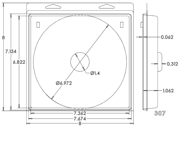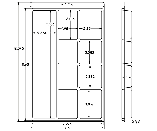 7.625" x 7.125" Clamshell