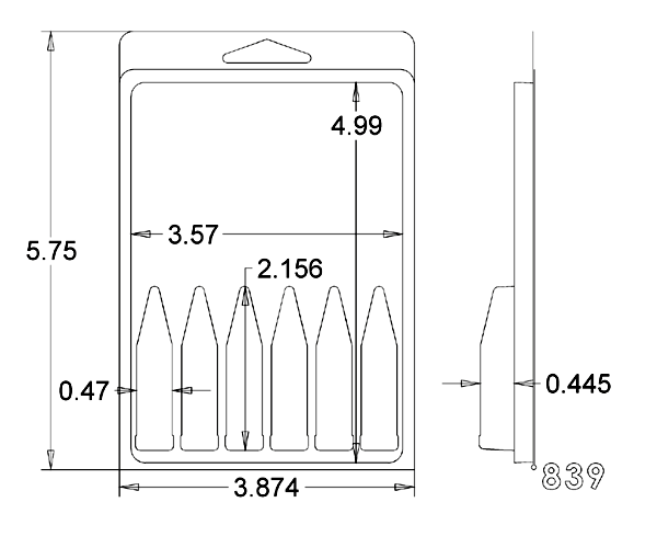 0.84" x 2.63" Clamshell